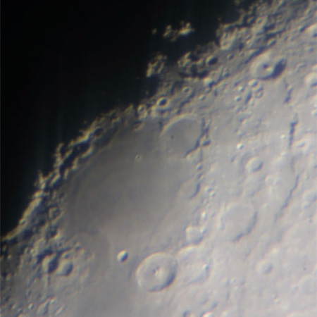 写真の上にある中央丘型くれーたーはテオフィルス(直径100km)。
