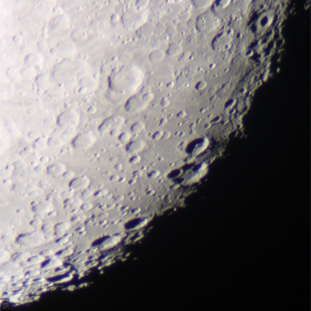 真中付近で明暗境界線が近づきつつあるクレーターがピティスクスとホンメル。
