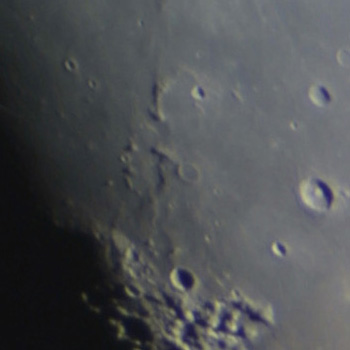 左のクレーターは、静かの海と晴れの海の境界にできたプリニウス。