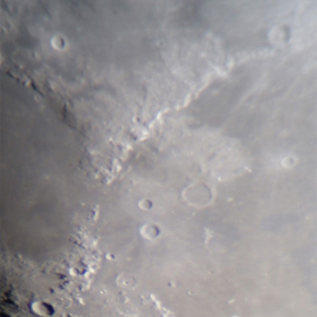 夕日を浴びて輝くアペニン山脈の北西斜面。その南にある黒っぽい部分が蒸気の海。