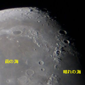 雨の海周辺。プラトー、アルプスの谷、コーカサス山脈などを見つけてみよう。