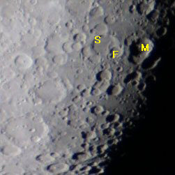 そのとなりの大きなクレーターがシュテーフラー。その中にあるクレーターがファラデーだ。