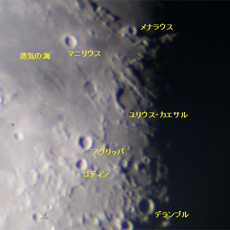 南にあるくっきりしたクレーターは、アグリッパとゴディン。