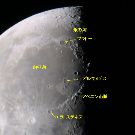 雨の海の溶岩平原には、突き出すような孤立した山々がある。