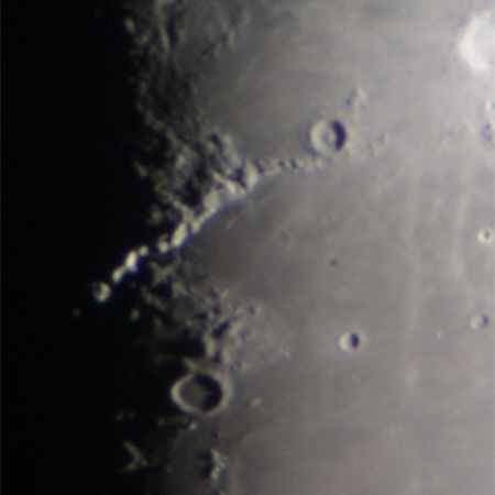 アペニン山脈の標高の高い部分はまだ夕日に照らされている。