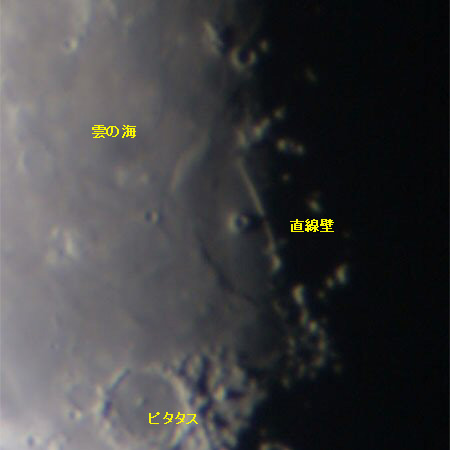 写真右にある直線状にみえる構造が直線壁。