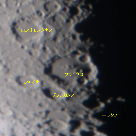 クラビウスの底に注目。中央部が盛り上がっているのがわかる。