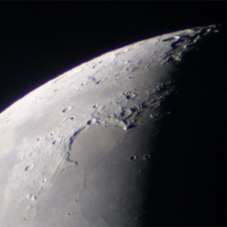 明暗境界線が虹の入江にかかっている。その北が霞の入江。