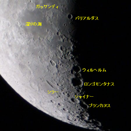 南極方面へ向かって明暗境界線をたどっていくと細長い形のクレーター・シラーをみつけることができる。