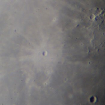 ケプラーの周囲の黒っぽい平原にケプラーから飛び散った白っぽい放出物が分布する。