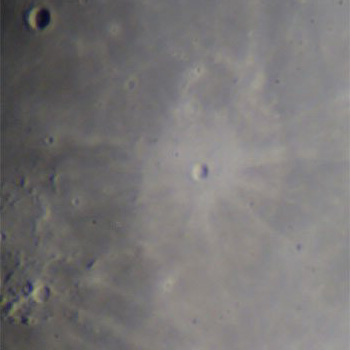 ケプラーの周囲の黒っぽい平原にケプラーから飛び散った白っぽい放出物が分布する。