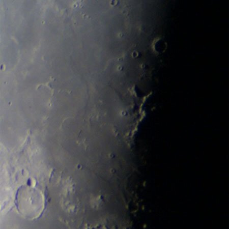 写真右端に白くみえる不規則な線状の地形がリフェウス山脈。