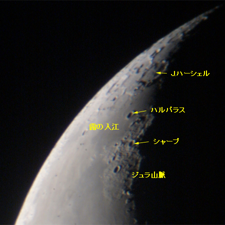 ジュラ山脈の背後の露の入江にも似た大きさのくっきりしたクレーターがある。これはハルパラスというクレーター。