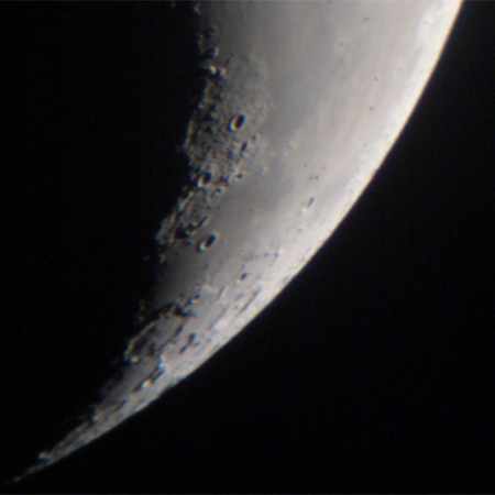 くっきりしたクレーターは、メラン(西)とシャープ。