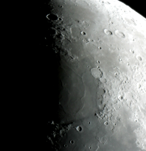 晴れの海は溶岩流平原で、溶岩流の表面にできたしわが目だって見える。