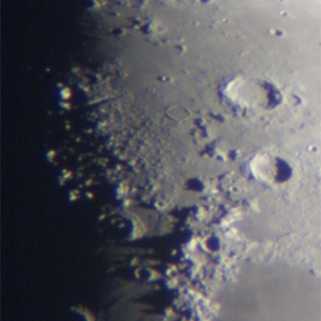 半月の見どころは、長さ180kmに達するアルプスの谷。雨の海をふちどる荒々し