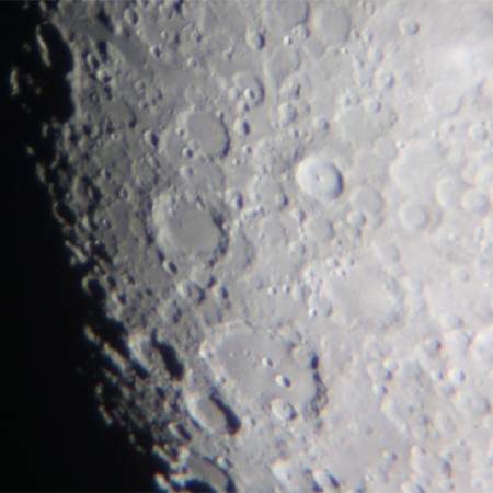 影の様子からクレーターの中央部が盛り上がっていることを観察してみよう。月が