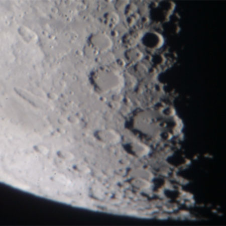 る。月齢8日から9日にかけて朝を迎える。その姿は壮大だ。クレーターの南の縁に