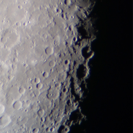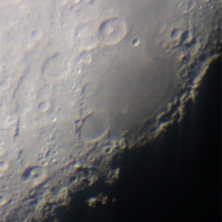 月齢が6日になるとようやく晴の海が朝を迎える。その南側には靜の海、さらに神