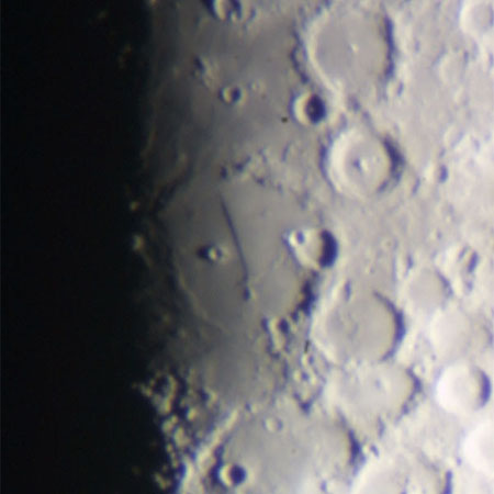 の東縁部に直線壁が現れる。上弦の月では直線壁の影が平原にくっきりと映しだされ