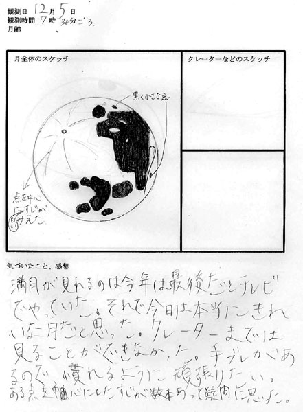 満月の日に海をスケッチしています。ティコの光条も描かれています。