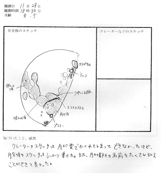 雨の海など、欠け際の地形がしっかり描けているスケッチです。