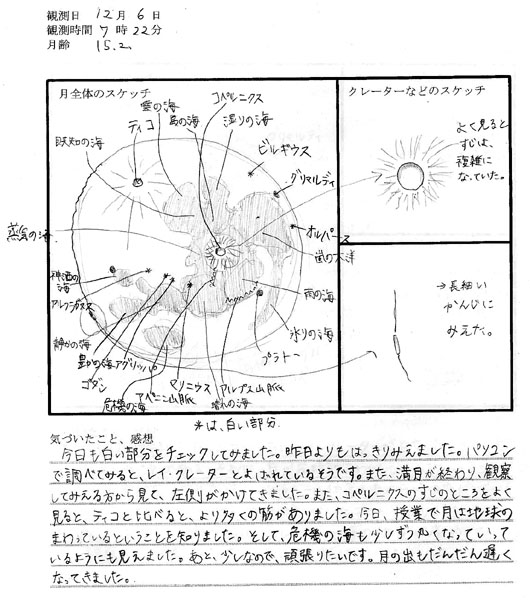 月の海の分布や、コペルニクスやティコのまわりの光条がしっかり描けています。