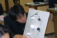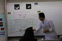 岐阜大学附属中学校における金星の満ち欠けの授業の様子。2002年10月21日。