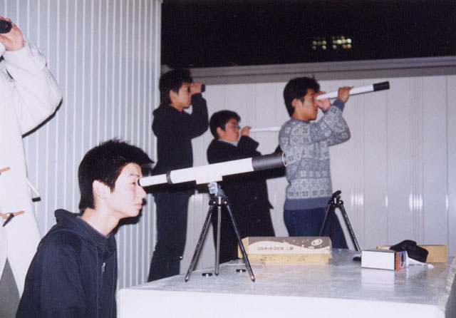 手製望遠鏡による生徒たちの観察の様子(長良中学校にて)