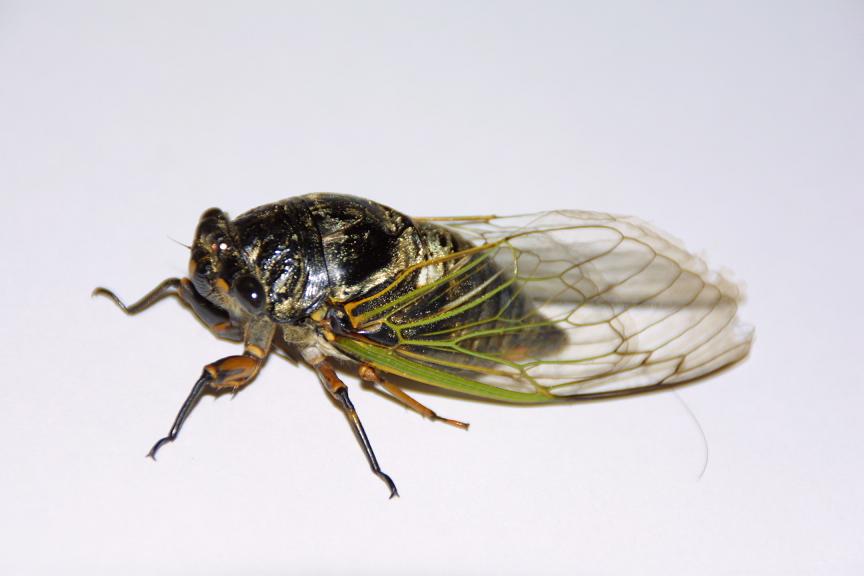 翅の先が痛んでいます.胸がアブラゼミなどと比べ,ずいぶん厚いように思います.