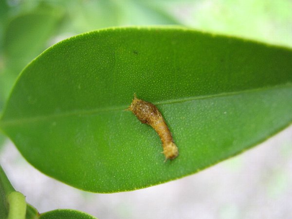 2005年6月8日の幼虫.チョウの楽園ーぼんてん版のキンカンの木にいます.
