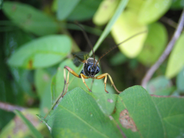 少し調べたのですが,種はわかりませんでした.腹部が長く,足は黄色いなど特徴はあるのですが.