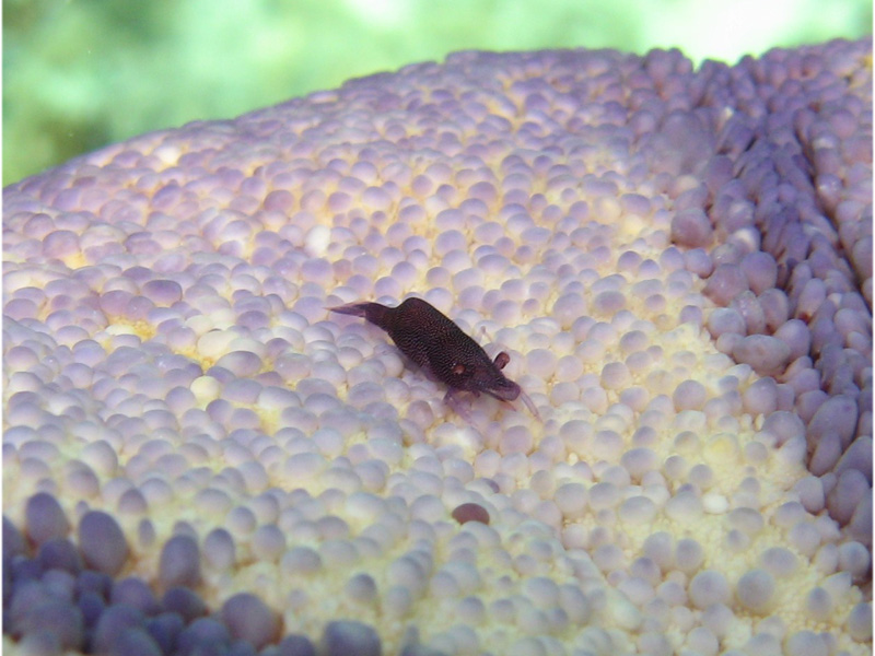 ヒトデ類と共生します。この個体の宿主はマンジュウヒトデでした。