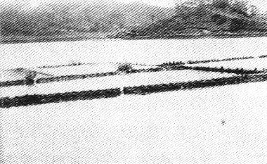 この辺りは地震によって土地が沈み、水がたまって25ヘクタールが沼と化しました。 上の写真はI'から撮られた新沼ができた当時の様子です。今回の写真は最も低い場所から撮っているため、道がだんだん高くなっていくのがわかります。