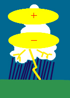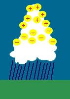 | 電気には+とマイナスがありますが、実験によって、氷は通常+の電気を帯び、あられは−の電気を帯びることが明らかになりました。 したがって、水蒸気があられや氷になった場合、氷の多い部分には+の電気が、あられの多い部分には−の電気がたまることになります。地上(地面)は+と考えられています。 |
