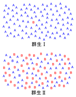同じく2種からなる群生だが,Ⅱのほうが多様性が高い。