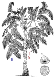 他のシダ種子植物と異なり木部が多く,高さは4 mにも達した。雌雄の生殖器官が葉に付随している。