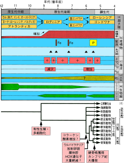 多細胞生物の系統樹と出現時期。
