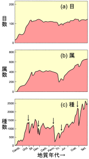 ペルム紀末,つまりP/T境界の生物大量絶滅事件は,地球の歴史の中で最大である。この絶滅事件で,海棲生物種の95%が絶滅した。絶滅した生物種は,フズリナ,腕足動物,軟体動物,環形動物,節足動物 など多岐にわたる。