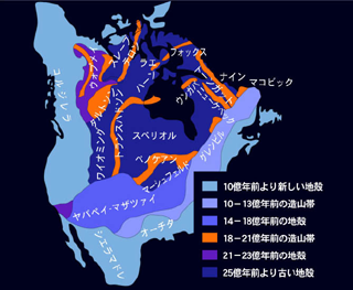 北米大陸は、太古代の地質体とそれをとりまく原生代の造山帯で特徴づけられる。太古代の地質体はクラトンと呼ばれているもので、北米大陸には、スペリオル、ハーン、ラエ、スレーブ、ワイオミングといったクラトンが存在している。