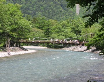 上高地は,長野県松本と岐阜県高山のほぼ中間に位置している。長野県安曇村沢渡からバスに乗り換え,釜トンネルをくぐると,左手にとつぜん焼岳が現れる。