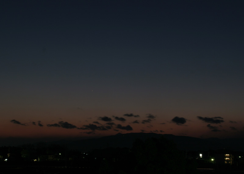 画像をクリックすると日没の位置と彗星の位置を矢印で結びます。