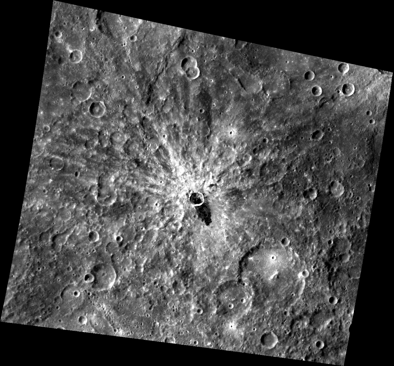 クレーターからのエジェクタは白っぽい色をしているのに対し、
